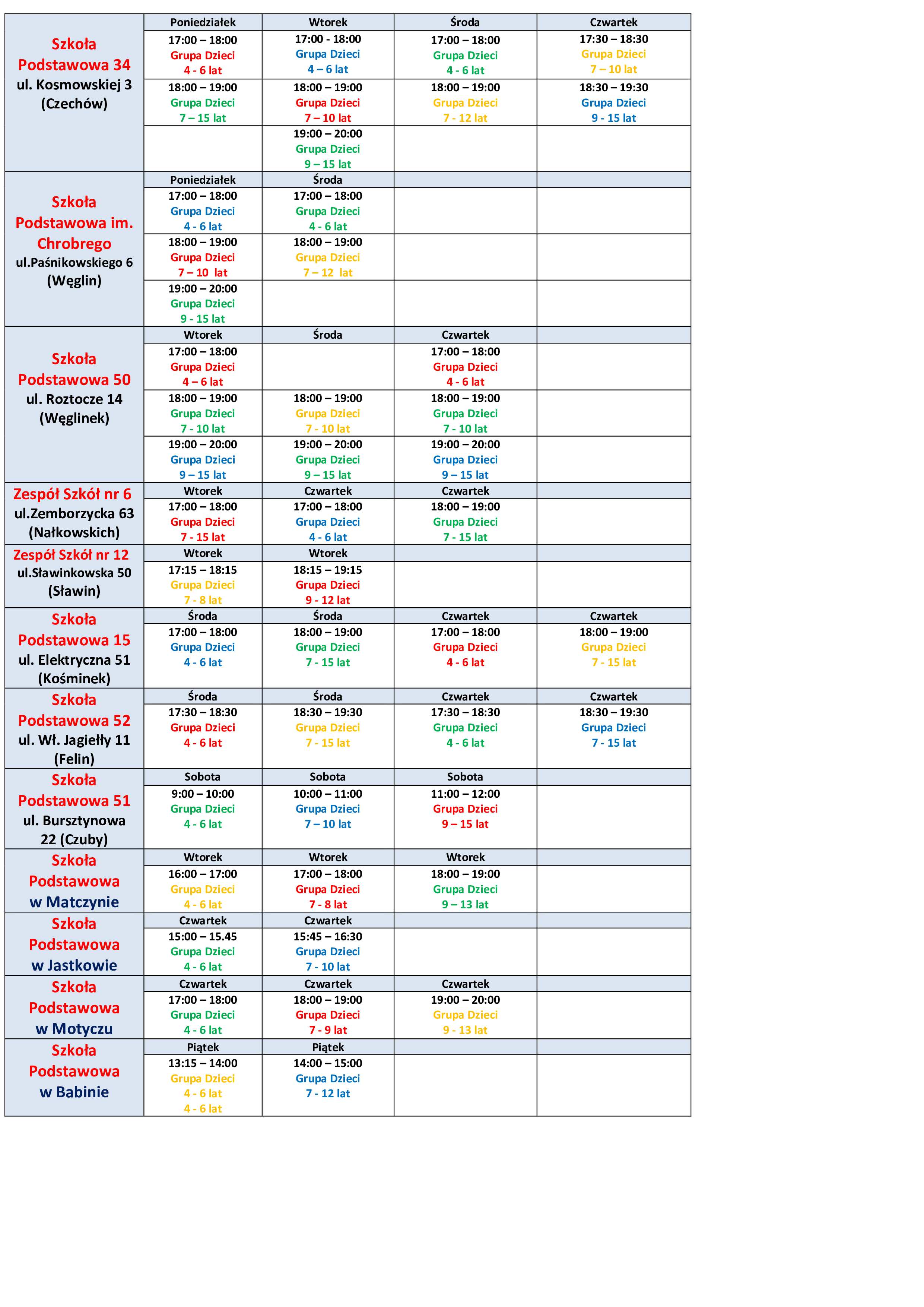 (Termin płatności za zajęcia do 10 każdego miesiąca)